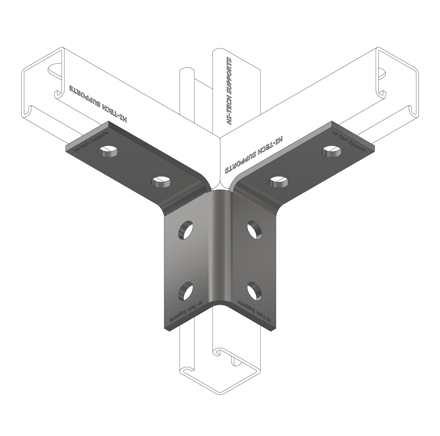 4-Hole Axis Bracket is used for heavy duty applications. Mainly used for connecting three channels which are mutually perpendicular to each other